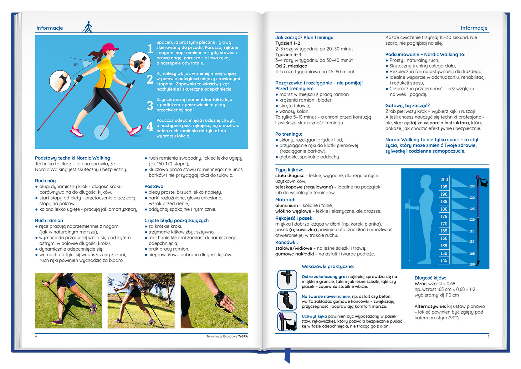 Książkowy kalendarz nordic walking to nie tylko praktyczne narzędzie do planowania i monitorowania, ale również źródło inspiracji. Pomaga utrzymać motywację, lepiej planować treningi (spacery techniczne, marsze tempowe, interwały, trasy terenowe) i rozwijać umiejętności, ciesząc się każdą chwilą na leśnych i miejskich ścieżkach. Dzięki niemu każdy entuzjasta nordic walking może świadomie dążyć do swoich celów i czerpać radość z marszu przez cały rok.