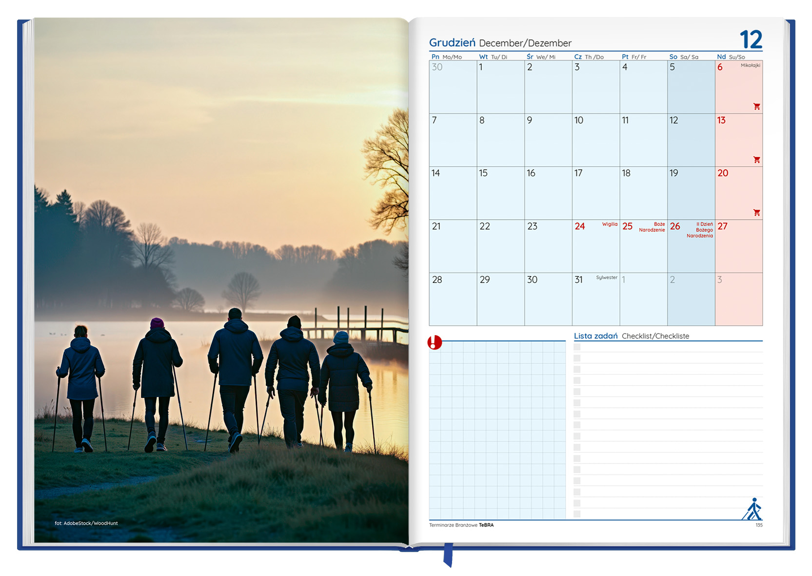 Terminarz Nordic Walking to idealne narzędzie dla wszystkich miłośników marszu z kijami, które pomoże zaplanować i zorganizować każdy dzień treningowy w nadchodzącym roku. Dzięki niemu możesz na bieżąco śledzić swoje postępy, zapisywać osiągnięcia i cele na 2026 rok.